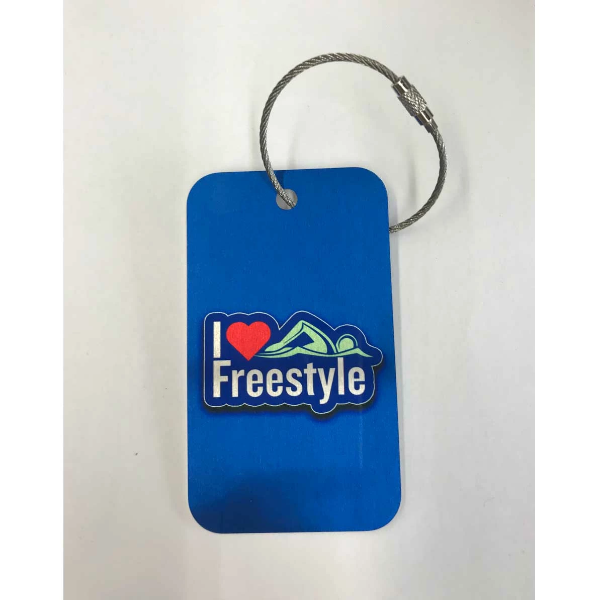 These metal bag tags make for a great gift. Choose from these fun swim prints or give us a call and we can create a unique logo for you or your team!